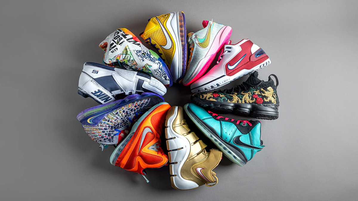 Một bên thân giày bóng rổ LeBron được chọn để thể hiện những khoảnh khắc đặc biệt trong sự nghiệp của LeBron, chẳng hạn như năm dự tuyển, chức vô địch, giải thưởng MVP và huy chương Olympic của anh ấy. Bộ đếm gót chân có biểu tượng đầu sư tử với vương miện, đại diện cho biệt danh “King James” của anh ấy.