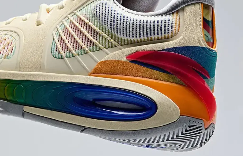 Các tấm bên hông giày cũng có các sợi cáp nylon để cải thiện khả năng ôm chân ngang, cùng với 2 tấm TPU ở mỗi bên của đế giữa để tăng cường hỗ trợ và độ cứng xoắn. Cuối cùng là bộ phận ổn định gót chân bằng TPU bên ngoài được tạo hình logo của Anta. Mọi chi tiết đều phối hợp ăn ý với nhau. Mặc dù toàn bộ phần thân giày là vật liệu tổng hợp, nhưng nó vẫn mang lại cảm giác cao cấp nhất có thể khi mang vào chân.