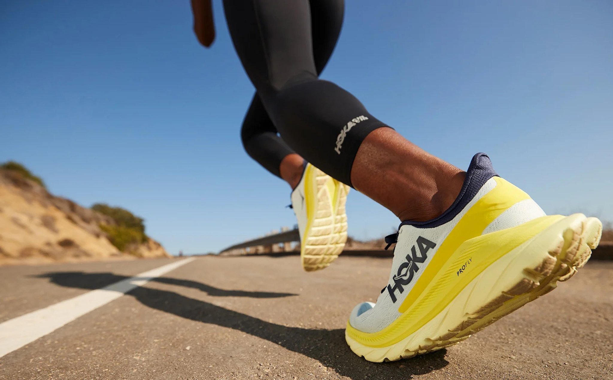 Đặc điểm nổi bật của giày Hoka là phần đế giày được thiết kế đặc biệt với lớp đệm dày hơn so với các giày chạy thông thường. Điều này tạo ra một cảm giác như bạn đang chạy trên lớp đệm mềm mại và êm ái, giúp giảm áp lực lên các khớp và cung cấp hỗ trợ tốt hơn cho bàn chân. Thiết kế đế giày cong nhẹ giúp tạo ra sự ổn định và linh hoạt trong quá trình chạy.