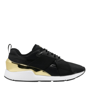 Với vẻ ngoài đầy thanh lịch, tính thời trang cao với phần đế được thiết kế uyển chuyển như vũ công, từng đường kim mũi chỉ đều vô cùng tỉ mỉ và chắc chắn. Mặc dù không có quá nhiều chi tiết cầu kì nhưng sản phẩm vẫn rất ăn điểm trong mắt khách hàng. Điểm nhấn thu hút của đôi giày còn nằm ở chi tiết TPU kim loại màu vàng đầy nét quyến rũ. Bên cạnh đó,  Puma nữ Muse X-2 Metallic còn được làm từ da lộn với lớp phủ tổng hợp cao cấp, độ ôm được thiết kế đặc biệt giúp cho việc chuyển động dễ dàng hơn. Phần đế ngoài là chất liệu cao su mềm dẻo không những tạo độ bám chắc chắn mà còn mang lại cảm giác thoải mái cho đôi chân.