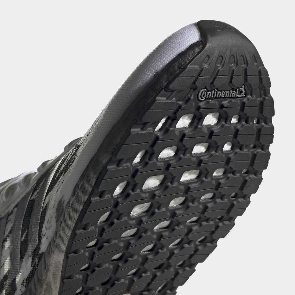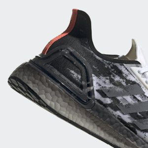 UltraBoost PB ‘Cloud White’ kết hợp hiệu suất xây dựng với đồ họa đặc biệt, cả hai đều đề xuất tốc độ. Phần trên, được làm bằng chất liệu Celermesh siêu nhẹ và mỏng của adidas, được tạo điểm nhấn bằng hiệu ứng nét vẽ kéo dài từ gót chân đến bàn chân trước. Tương tự, màu đen và trắng gradient được áp dụng cho đế giữa của Boost có chiều dài đầy đủ, cung cấp Boost nhiều hơn 20% so với UltraBoost ban đầu.