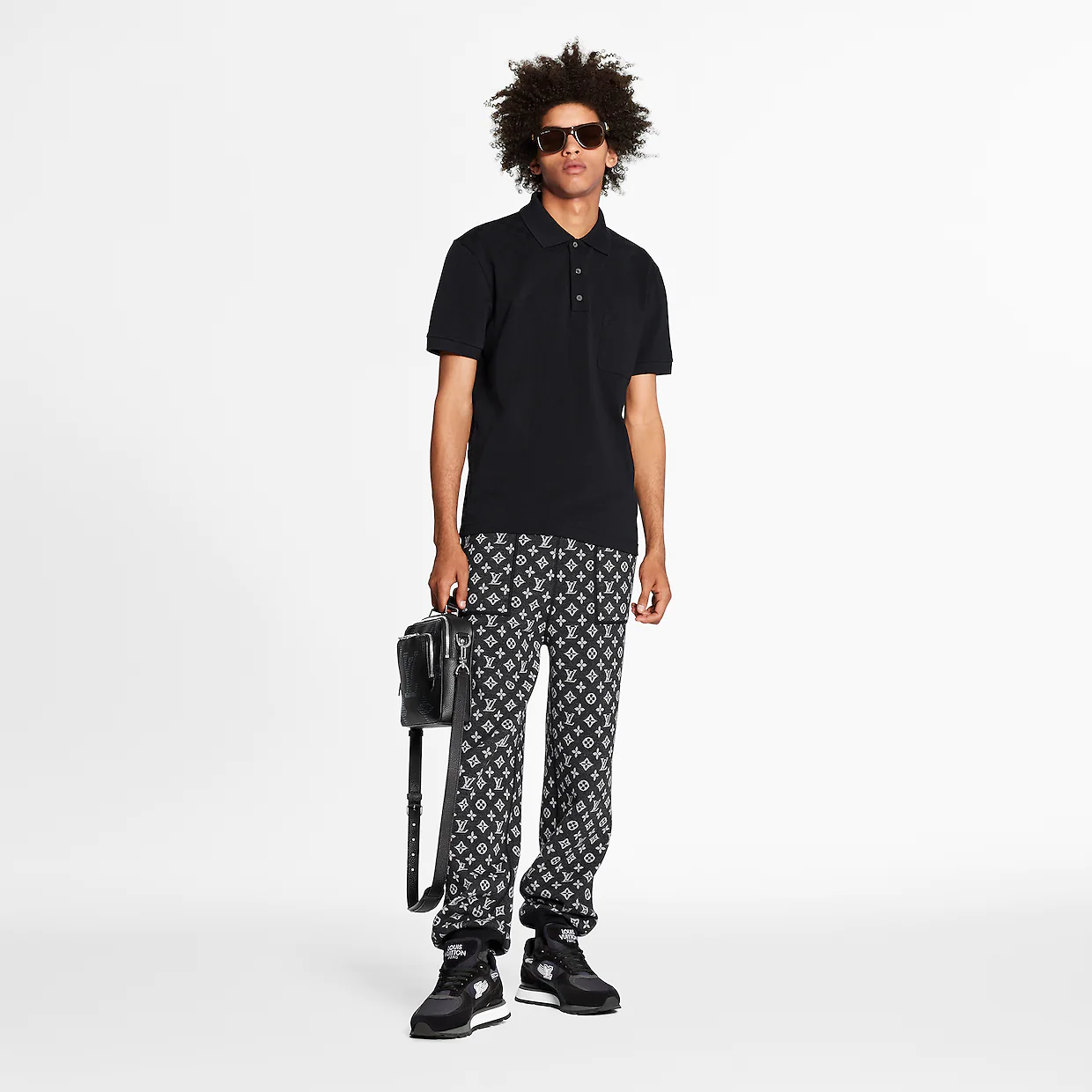 Áo Louis Vuitton Half Damier Polo ‘Black’ 1A8HBZ