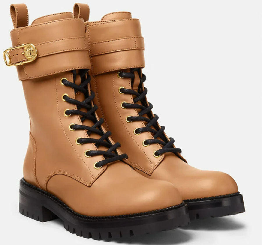 Giày Versace Safety Pin Leather Boots DST419E-DVTA3-1K26V