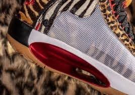 Giày có phần trên bằng lưới mờ màu trắng đi kèm với lớp phủ phía dưới với họa tiết được lấy cảm hứng từ lớp da đặc trưng của loài ngựa vằn xung quanh tấm chắn của giày mang lại một cái nhìn đơn giản mà đẹp; tuy nhiên, phần sau che giấu một cách tinh tế sự sắp xếp phức tạp của các vằn hổ có màu sắc, các chi tiết lông của báo gêpa, hươu cao cổ và ngựa vằn theo thứ tự cụ thể.