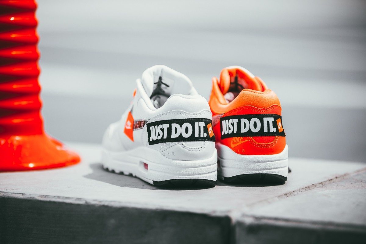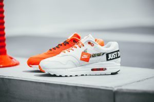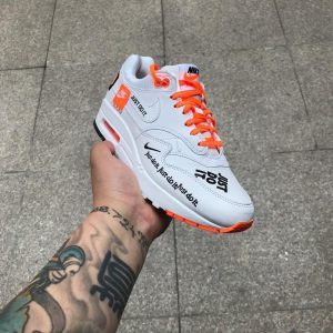 Được thiết kế để kỷ niệm 30 năm câu khẩu hiệu “Just Do It”, giày thể thao Nike Air Max 1 ‘Just Do It’ phiên bản đặc biệt có chứa câu nói nổi tiếng này bằng màu sắc, phông chữ và đồ họa giống với chiến dịch JDI ban đầu năm 1988. Mặt trên bằng da lộn màu trắng sáng. Màu trắng trở nên sống động với những mảng màu cam và đen nguyên bản của Nike, mang đến dây buộc, Air Max và đế ngoài có thể nhìn thấy được.