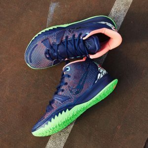Trong khi vẫn chuẩn bị ra mắt như một phần của bộ sưu tập Nike Rayguns , đôi mới xuất hiện đã loại bỏ phối màu chủ yếu là “Black” để chuyển sang một bảng màu bao gồm các sắc thái của hải quân, xanh lá cây rực rỡ và hồng. Mặt bên tạo cảm giác thẩm mỹ rời rạc, trong khi spine tự hào có một bộ mắt thêu bắt mắt. Dưới chân, đôi giày thể thao bóng rổ mới nhất của Irving có thiết kế táo bạo khi mặt giày đa hướng được phủ một lớp màu xanh lục có vẻ như huỳnh quang.