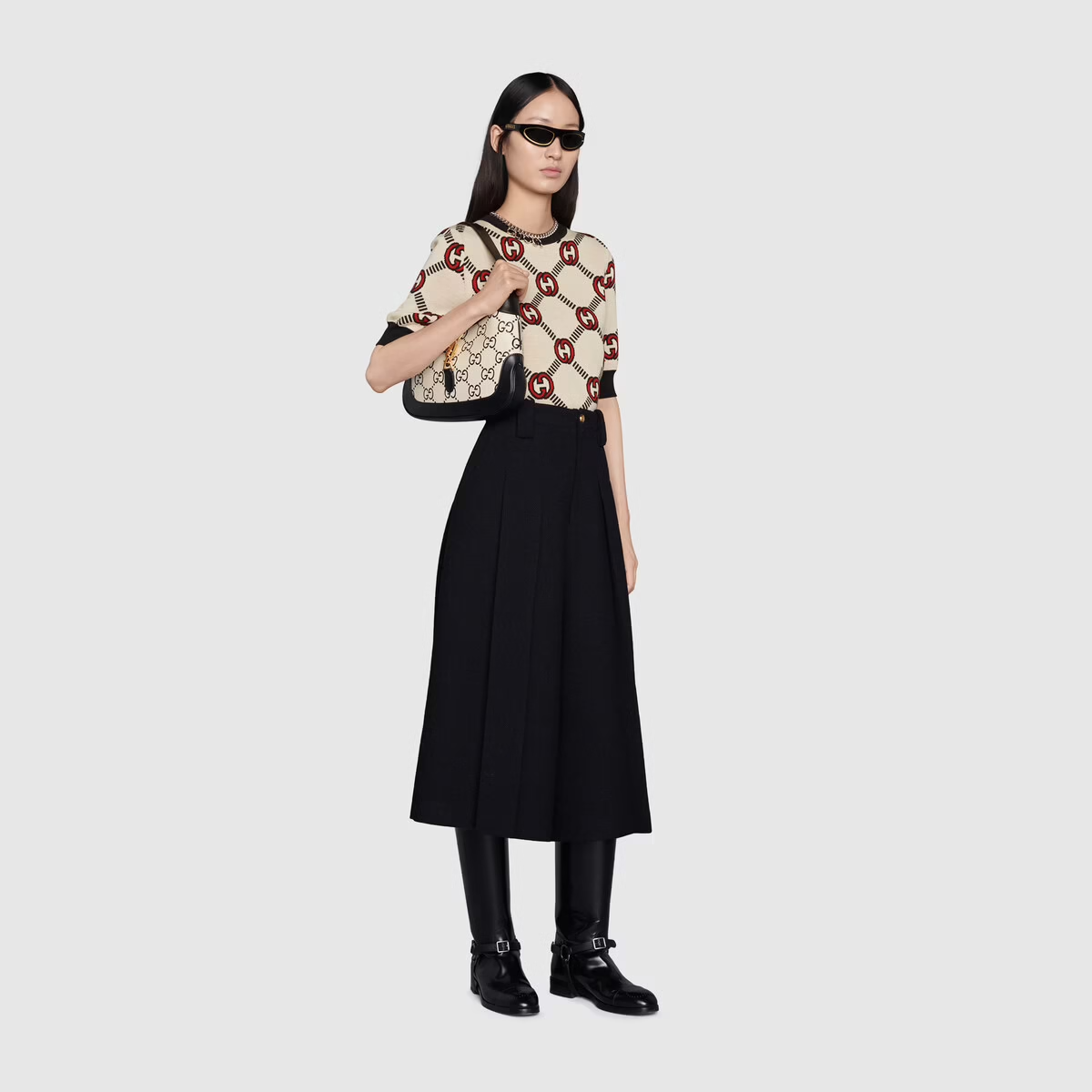 Túi Gucci Jackie 1961 Small GG Shoulder Black And White Leather 636706-UGMBG-9063