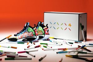 Phần upper được phủ một lớp vải lưới màu trắng với chất liệu tổng hợp công nghệ cao, mỗi mảnh bộ phần giày được viền bởi các đường màu đen dày tạo điểm nhấn. Những nét vẽ nguệch ngoạc của Noah được trải dài trên toàn bộ phần thân giày và xuất hiện với nhiều màu sắc rực rỡ: màu cam trên hộp ngón chân và phần bên hông, màu vàng ở phần giữa và xung quanh cản trước bàn chân, màu xanh lá cây trên cổ áo, màu xanh lam trên phần lỗ xỏ, màu tím trên lưỡi gà và cổ giày và màu đỏ tươi ở gót. Những điểm nhấn sáng sủa và những đường kẻ đen đậm này mang đến một cái nhìn hoạt hình gợi nhớ đến hình ảnh của chiếc Nike LeBron 6 “Stewie Griffin” PE cực hiếm của LeBron James .